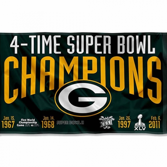 2Pcs WinCraft Green Bay Packers 4X and 4 Time Super Bowl Champions Flag Outdoor Indoor 3x5 Foot Banner
