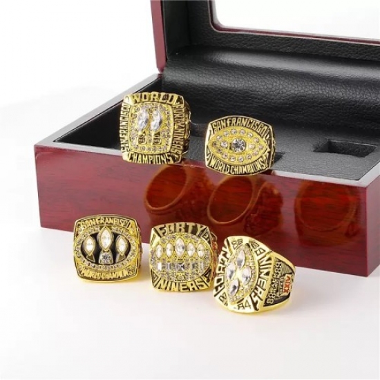 5Pcs NFL San Francisco 49ers Championship Ring Set World Cup fan memorabilia ring with wooden box - No. 11