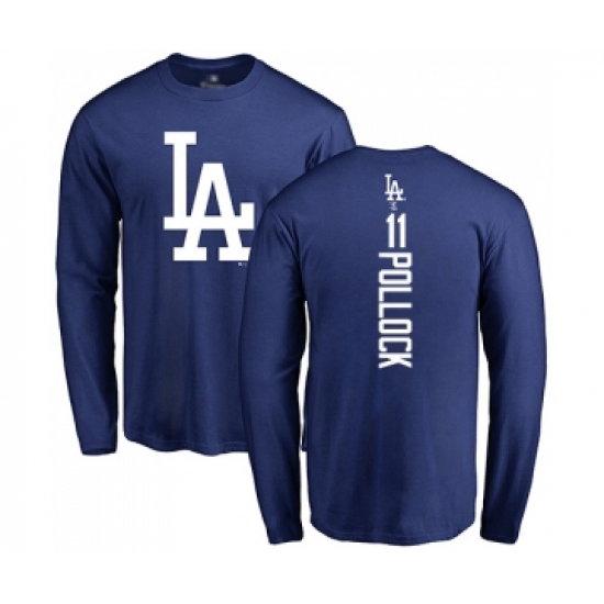 >Baseball Los Angeles Dodgers #11 A. J. Pollock Royal Blue Backer Long Sleeve T-Shirt