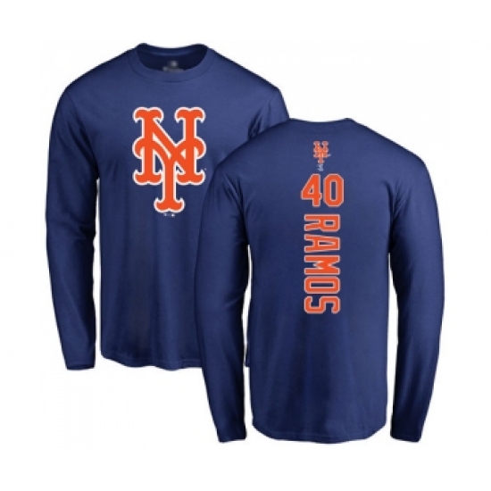Baseball New York Mets #40 Wilson Ramos Royal Blue Backer Long Sleeve T-Shirt