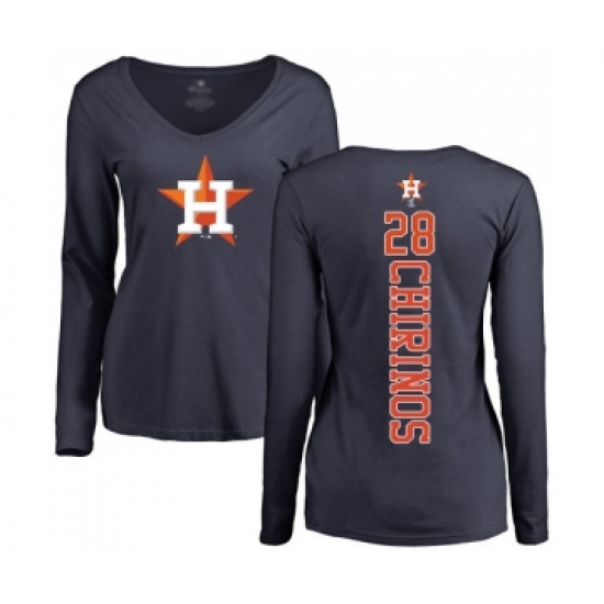 >Baseball Women's Houston Astros #28 Robinson Chirinos Navy Blue Backer Long Sleeve T-Shirt