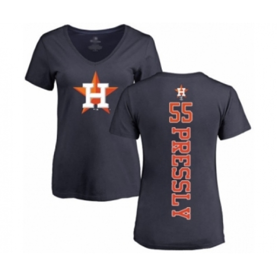 >Baseball Women's Houston Astros #55 Ryan Pressly Navy Blue Backer T-Shirt