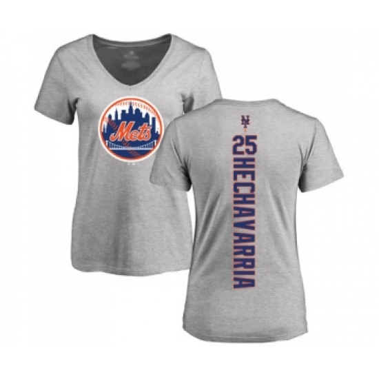 >Baseball Women's New York Mets #25 Adeiny Hechavarria Ash Backer T-Shirt