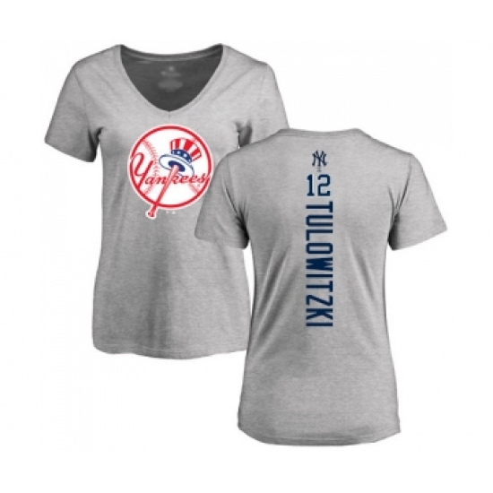 >Baseball Women's New York Yankees #12 Troy Tulowitzki Ash Backer T-Shirt