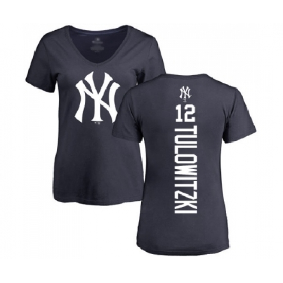 >Baseball Women's New York Yankees #12 Troy Tulowitzki Navy Blue Backer T-Shirt