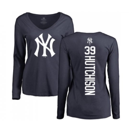 >Baseball Women's New York Yankees #39 Drew Hutchison Navy Blue Backer Long Sleeve T-Shirt