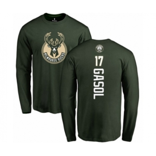>Basketball Milwaukee Bucks #17 Pau Gasol Green Backer Long Sleeve T-Shirt