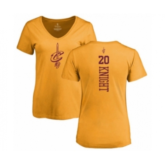 >Basketball Women's Cleveland Cavaliers #20 Brandon Knight Gold One Color Backer Slim-Fit V-Neck T-Shirt
