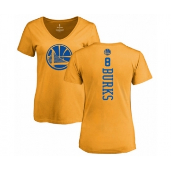 Basketball Women's Golden State Warriors #8 Alec Burks Gold One Color Backer Slim-Fit V-Neck T-Shirt