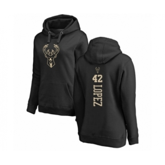 >Basketball Women's Milwaukee Bucks #42 Robin Lopez Black One Color Backer Pullover Hoodie