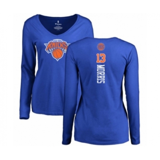 >Basketball Women's New York Knicks #13 Marcus Morris Royal Blue Backer Long Sleeve T-Shirt