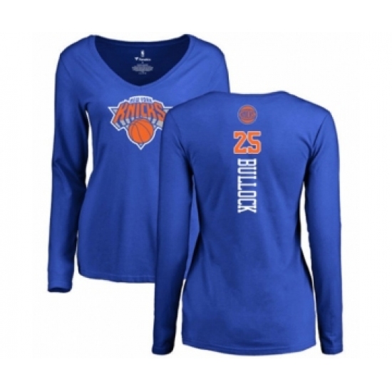 >Basketball Women's New York Knicks #25 Reggie Bullock Royal Blue Backer Long Sleeve T-Shirt