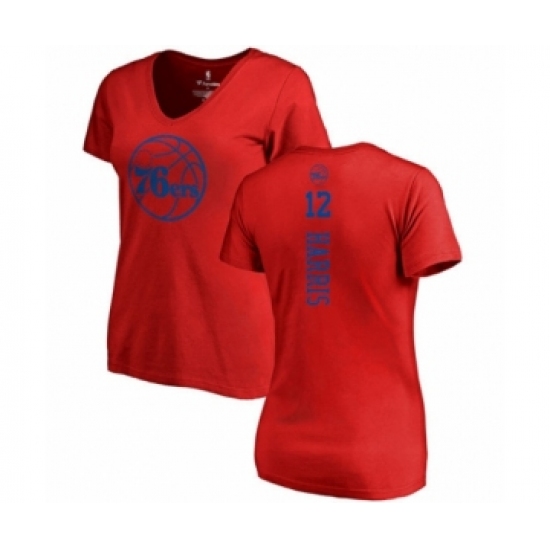 >Basketball Women's Philadelphia 76ers #12 Tobias Harris Red One Color Backer Slim-Fit V-Neck T-Shirt
