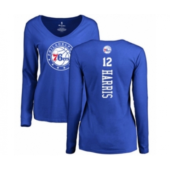 >Basketball Women's Philadelphia 76ers #12 Tobias Harris Royal Blue Backer Long Sleeve T-Shirt