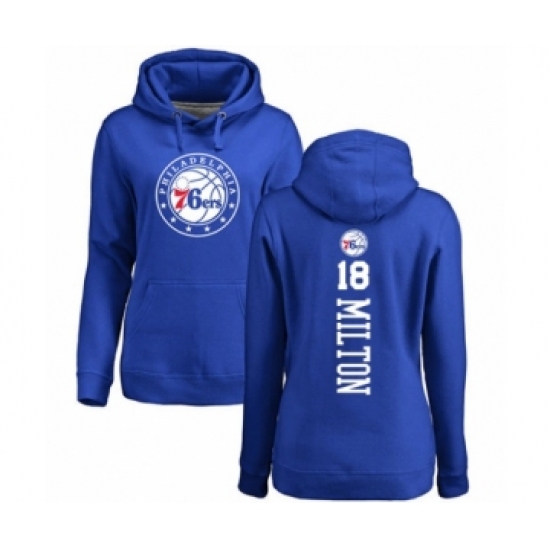 >Basketball Women's Philadelphia 76ers #18 Shake Milton Royal Blue Backer Pullover Hoodie
