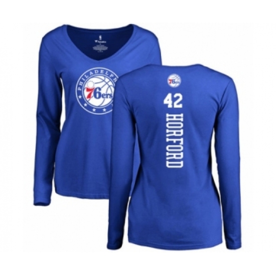>Basketball Women's Philadelphia 76ers #42 Al Horford Royal Blue Backer Long Sleeve T-Shirt