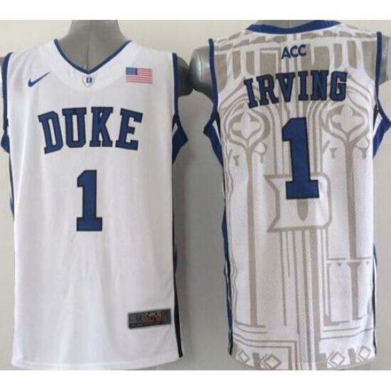 >Blue Devils #1 Kyrie Irving White Basketball Stitched NCAA Jersey