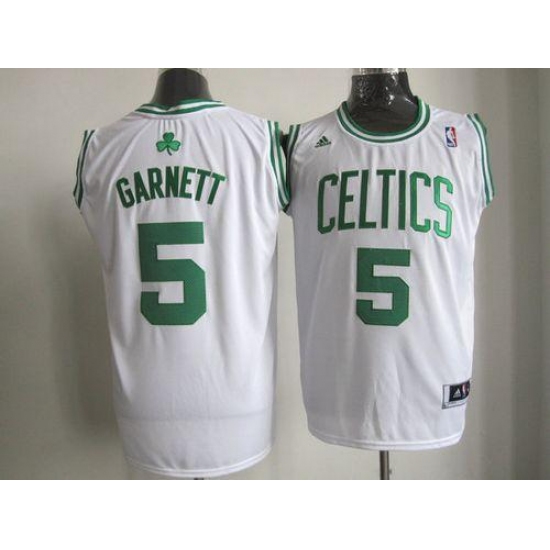 >Celtics #5 Kevin Garnett Stitched White NBA Jersey