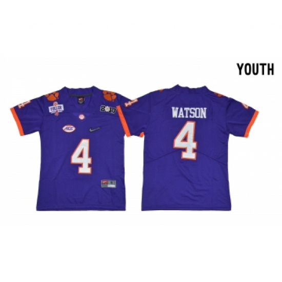 >Clemson Tigers 4 Deshaun Watson Purple Youth Diamond Logo 1975-1978 Fuller College Jersey
