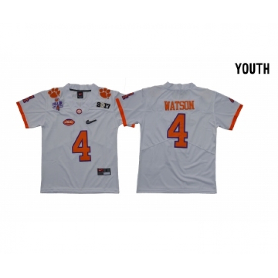 Clemson Tigers 4 Deshaun Watson White Youth Diamond Logo 1975-1978 Fuller College Jersey