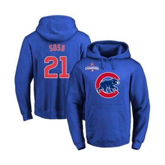 Cubs #21 Sammy Sosa Blue 2016 World Series Champions Primary Logo Pullover MLB Hoodie