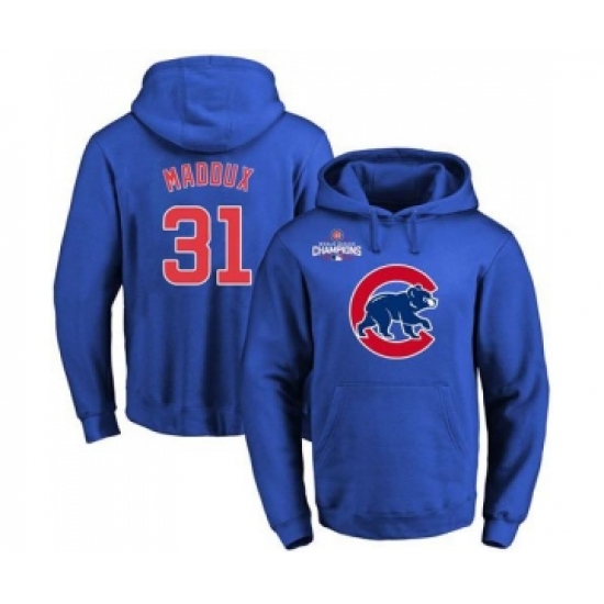 Cubs #31 Greg Maddux Blue 2016 World Series Champions Primary Logo Pullover MLB Hoodie