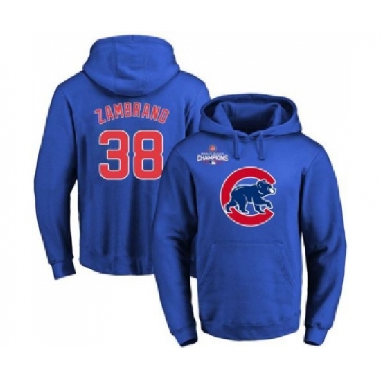 >Cubs #38 Carlos Zambrano Blue 2016 World Series Champions Primary Logo Pullover MLB Hoodie