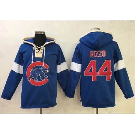 >Cubs #44 Anthony Rizzo Blue Pullover MLB Hoodie