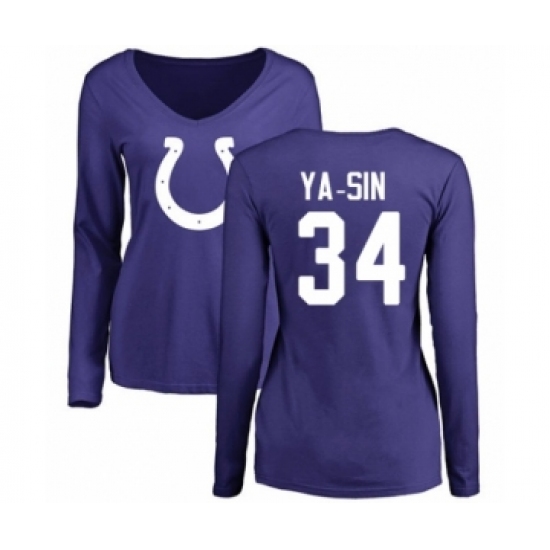>Football Women's Indianapolis Colts #34 Rock Ya-Sin Royal Blue Name & Number Logo Long Sleeve T-Shirt