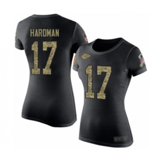 Football Women's Kansas City Chiefs #17 Mecole Hardman Black Camo Salute to Service T-Shirt