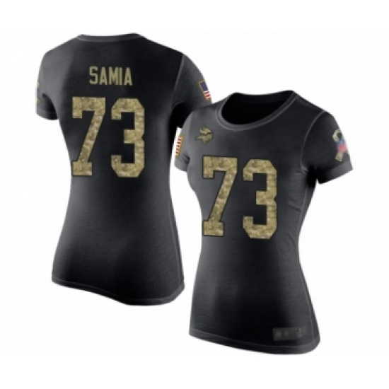 >Football Women's Minnesota Vikings #73 Dru Samia Black Camo Salute to Service T-Shirt