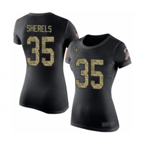 Football Women's New Orleans Saints #35 Marcus Sherels Black Camo Salute to Service T-Shirt