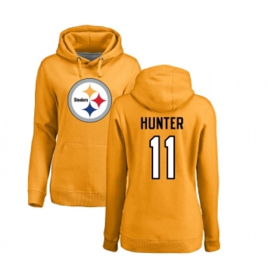 >Football Women's Pittsburgh Steelers #11 Justin Hunter Gold Name & Number Logo Pullover Hoodie