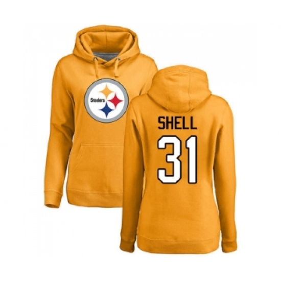 >Football Women's Pittsburgh Steelers #31 Donnie Shell Gold Name & Number Logo Pullover Hoodie
