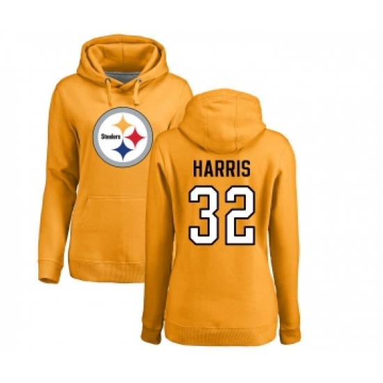 >Football Women's Pittsburgh Steelers #32 Franco Harris Gold Name & Number Logo Pullover Hoodie
