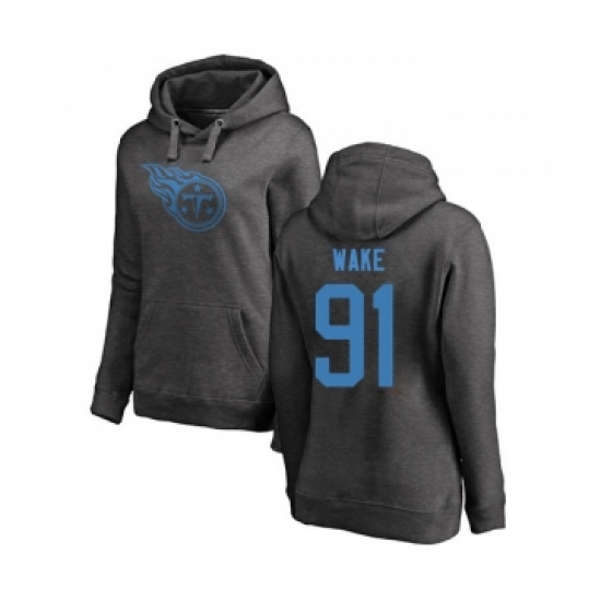 Football Women's Tennessee Titans #91 Cameron Wake Ash One Color Pullover Hoodie