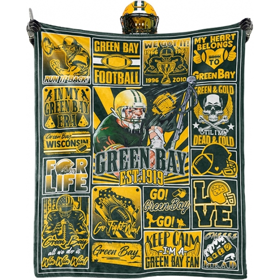 Green Bay Packers Blanket Rugby Fan Gifts for Style Throw Blanket Flannel Super Cozy Soft Living Room 60 x 50.