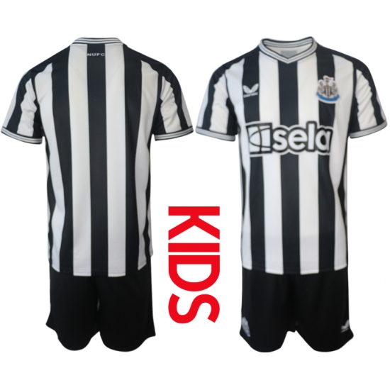 Kids Newcastle United Blank 2023-24 White Stripe Home Soccer Jersey