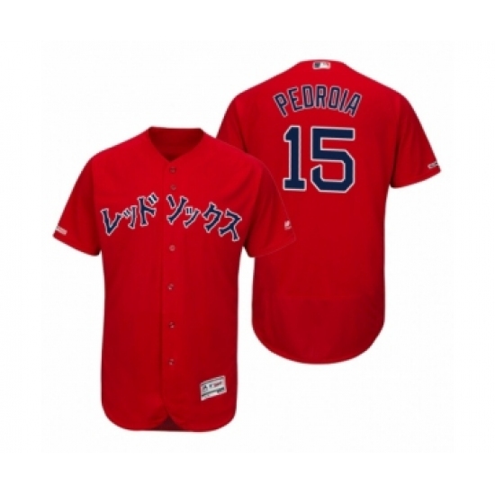 Men 2019 Asian Heritage Month Boston Red Sox #15 Dustin Pedroia Red Japanese Flex Base Jersey
