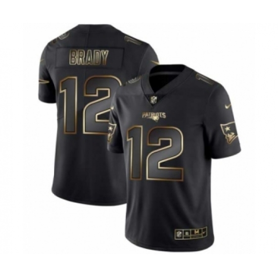 Men New England Patriots #12 Tom Brady Black Golden Edition 2019 Vapor Untouchable Limited Jersey