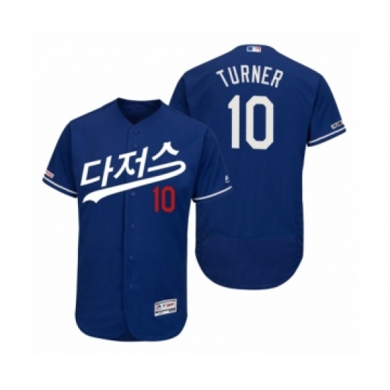 Men's 2019 Asian Heritage Month Los Angeles Dodgers #10 Justin Turner Royal Korean Flex Base Jersey