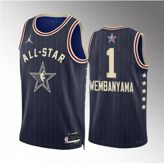 >Men's 2024 All-Star #1 Victor Wembanyama Navy Stitched Basketball Jersey