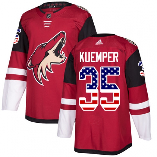 >Men's Adidas Arizona Coyotes #35 Darcy Kuemper Authentic Red USA Flag Fashion NHL Jersey