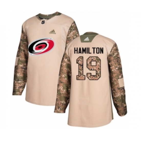 >Men's Adidas Carolina Hurricanes #19 Dougie Hamilton Authentic Camo Veterans Day Practice NHL Jersey