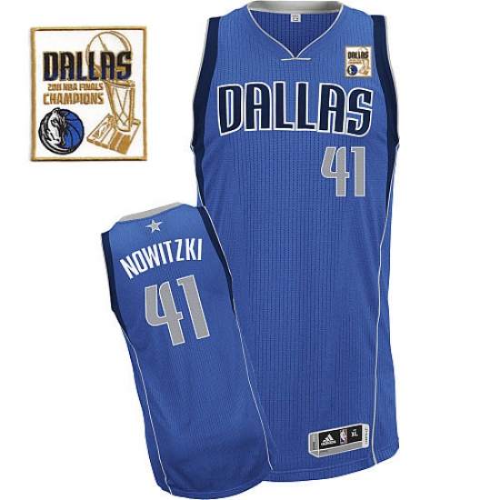Men's Adidas Dallas Mavericks #41 Dirk Nowitzki Authentic Royal Blue Road Champions Patch NBA Jersey