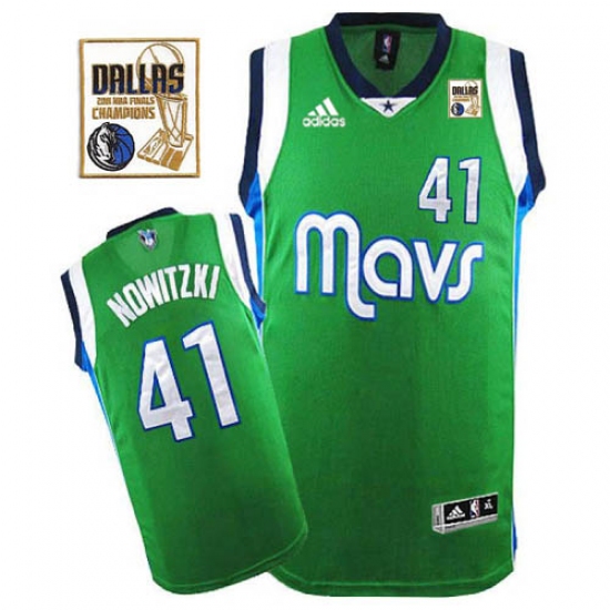 Home>NBA>Dallas Mavericks>Dirk Nowitzki>Men's Adidas Dallas Mavericks #41 Dirk Nowitzki Swingman Green Champions Patch NBA Jersey