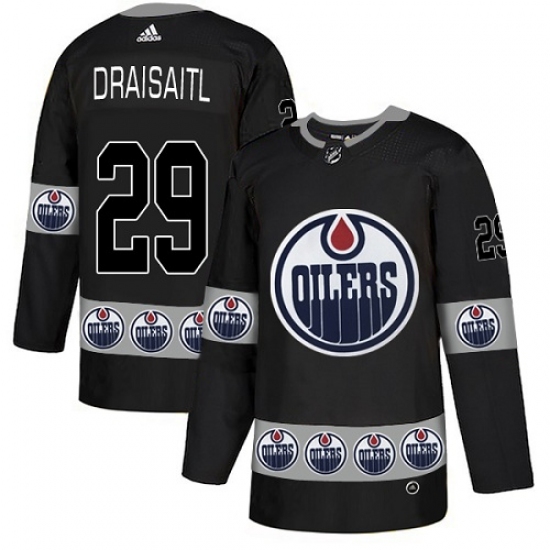 >Men's Adidas Edmonton Oilers #29 Leon Draisaitl Authentic Black Team Logo Fashion NHL Jersey