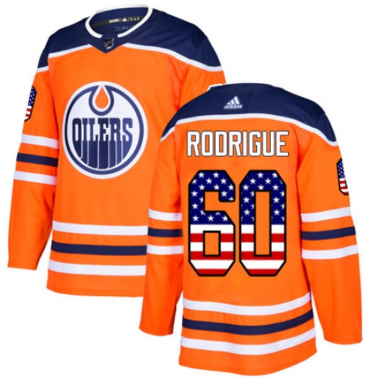 >Men's Adidas Edmonton Oilers #60 Olivier Rodrigue Authentic Orange USA Flag Fashion NHL Jersey
