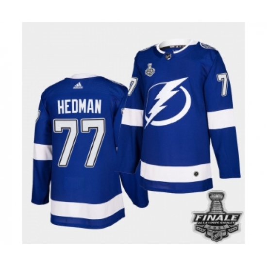 Men's Adidas Lightning #77 Victor Hedman Blue Home Authentic 2021 Stanley Cup Jersey