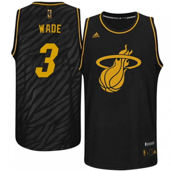Men's Adidas Miami Heat #3 Dwyane Wade Swingman Black Precious Metals Fashion NBA Jersey